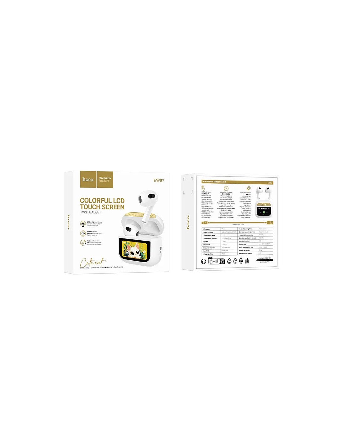 Los Audífonos In Ear Bluetooth Hoco EW87 con pantalla touch son una opción moderna y funcional para escuchar música y atender llamadas con comodidad. Equipados con Bluetooth 5.4, ofrecen una conexión estable y rápida con tu smartphone o tablet, junto con un alcance de hasta 10 m.