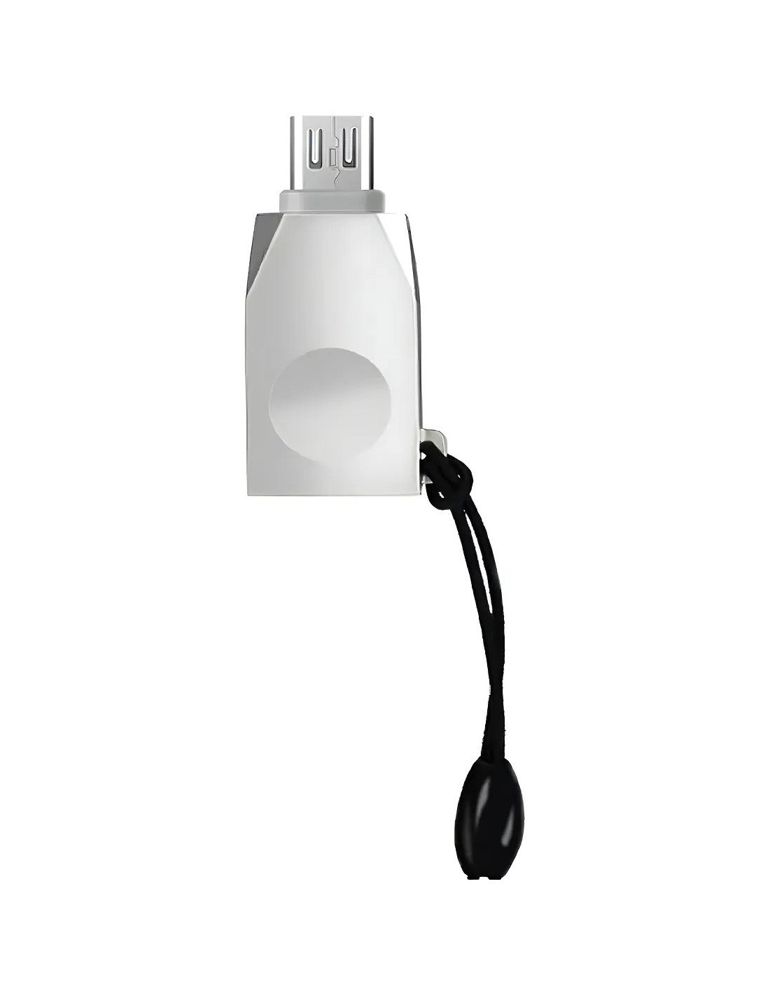 Gracias a la función OTG (On-The-Go), tu dispositivo con Micro-USB puede actuar como host USB, lo que abre muchas posibilidades tanto para transferencia de datos como para uso de accesorios externos. Su diseño compacto y metálico en aleación de zinc le da durabilidad, y el cordón elástico facilita llevarlo en llaveros, estuches o mochilas.