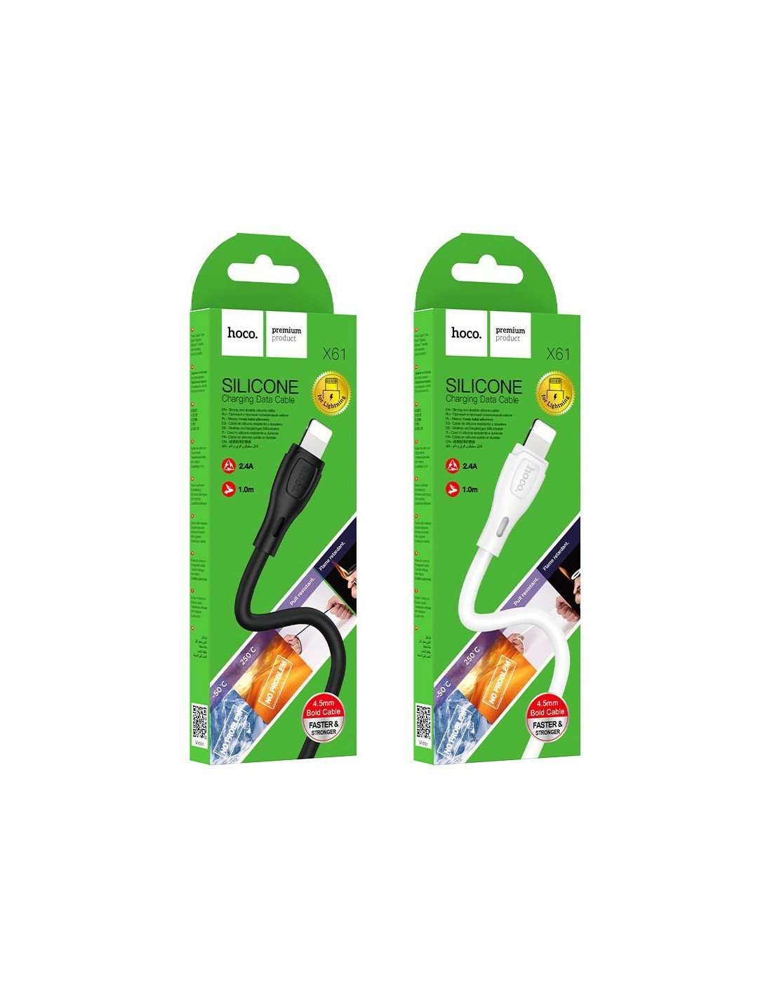 ✔ Cable USB-A a Lightning Hoco X61 1 m — diseñado para cargar y sincronizar dispositivos Apple con conector Lightning (iPhone, iPad, AirPods).