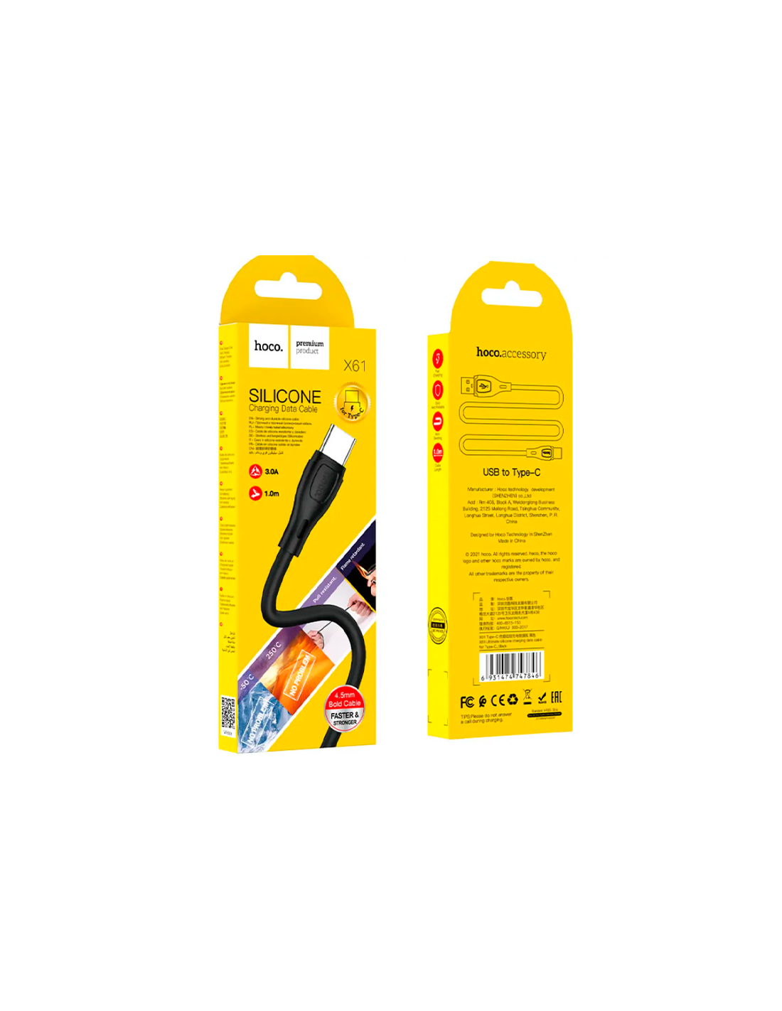 ✔ Cable USB-A a USB-C Hoco X61 1 Metro — diseñado para cargar y sincronizar dispositivos con puerto USB-C (smartphones, tablets, etc.).