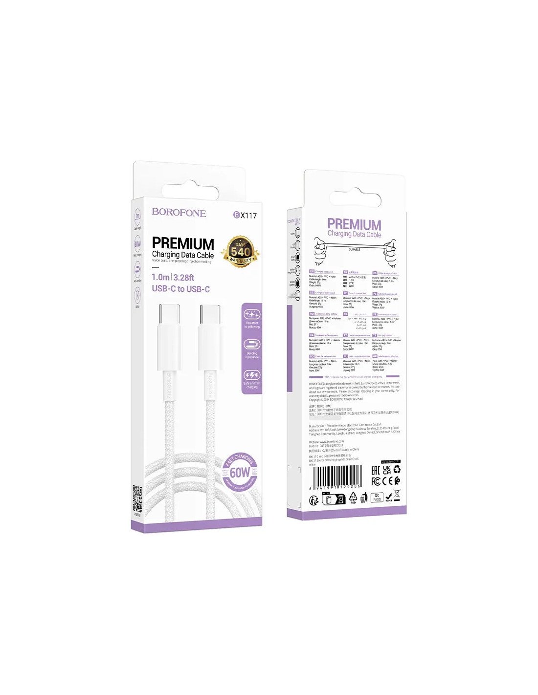 El Cable Borofone BX117 Tipo-C a Tipo-C 60W está diseñado para ofrecer carga rápida y segura, soportando una potencia de hasta 60W, ideal para dispositivos compatibles con Power Delivery (PD) como smartphones, tablets y notebooks.