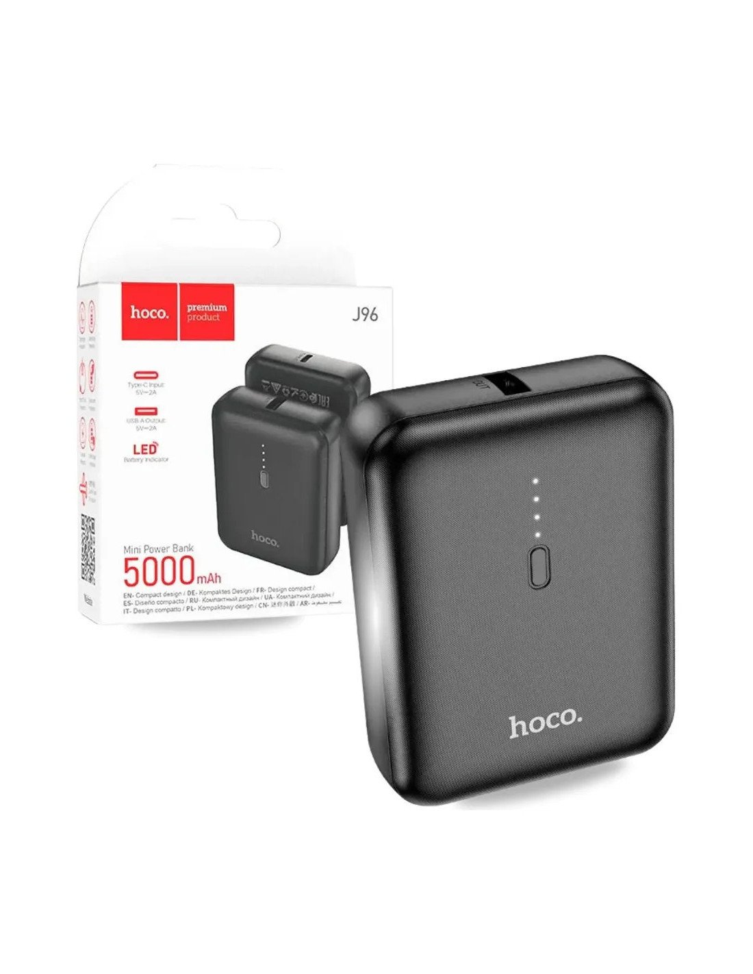 El Powerbank Hoco J96 Strider 5 000 mAh es un cargador portátil diseñado para mantener tus dispositivos móviles siempre con batería, ya sea en el día a día o de viaje. Con una capacidad total de 5 000 mAh (≈3 000 mAh útiles), ofrece energía suficiente para múltiples cargas completas de smartphones o una carga adicional de tablets pequeñas.