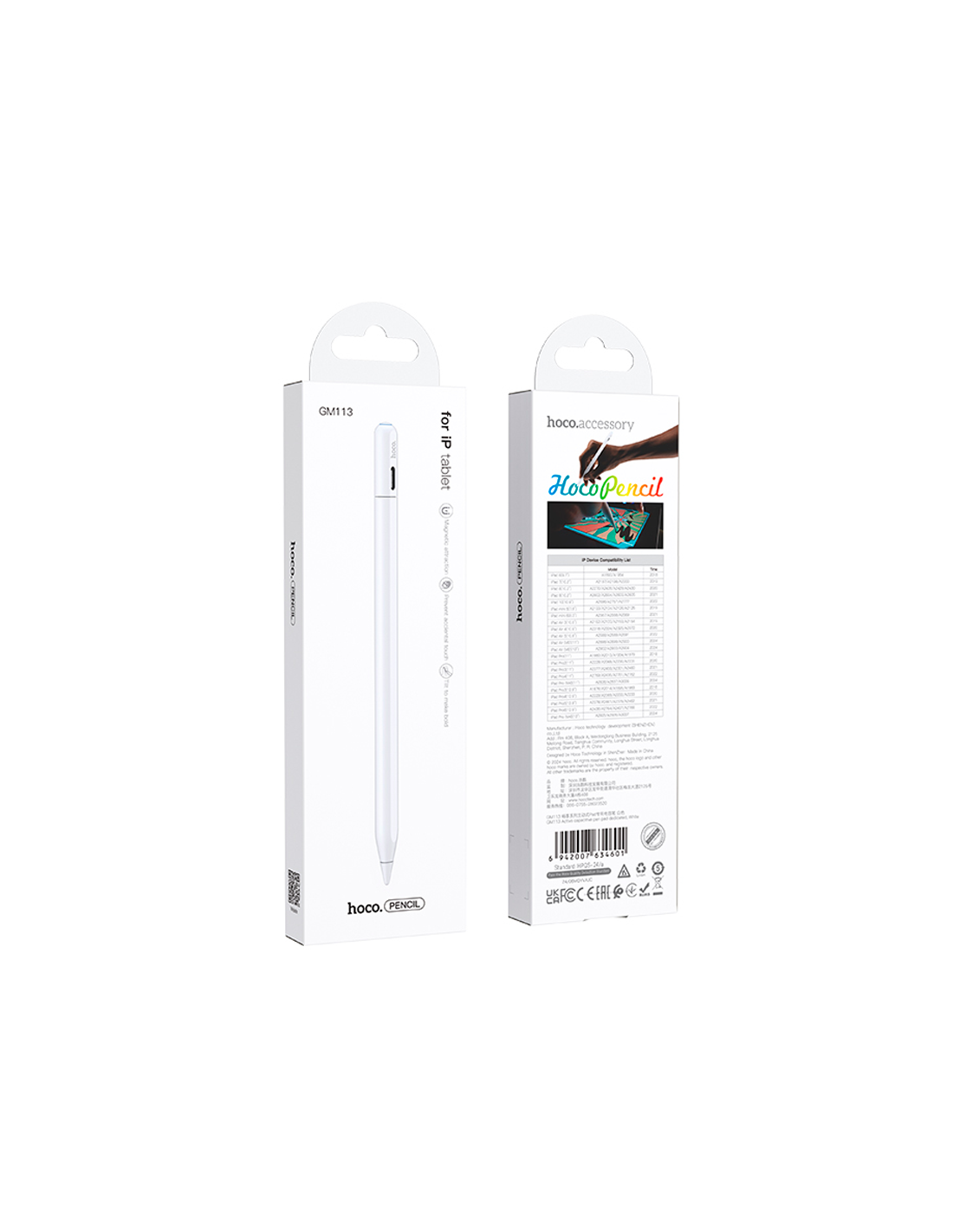 El Lápiz Touch Para Tablet Hoco GM113 Blanco es un stylus táctil activo diseñado para tablets Apple iPad (modelos desde 2018 en adelante), pensado para ofrecer precisión y fluidez al escribir, dibujar o navegar en pantalla. Su punta POM de 1,5 mm ofrece un trazo suave y detallado, y es incluso compatible con la punta original del Apple Pencil.